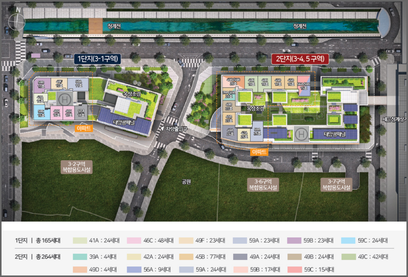 특히나 청계천을 끼고 올라가는 아파트라는 점이