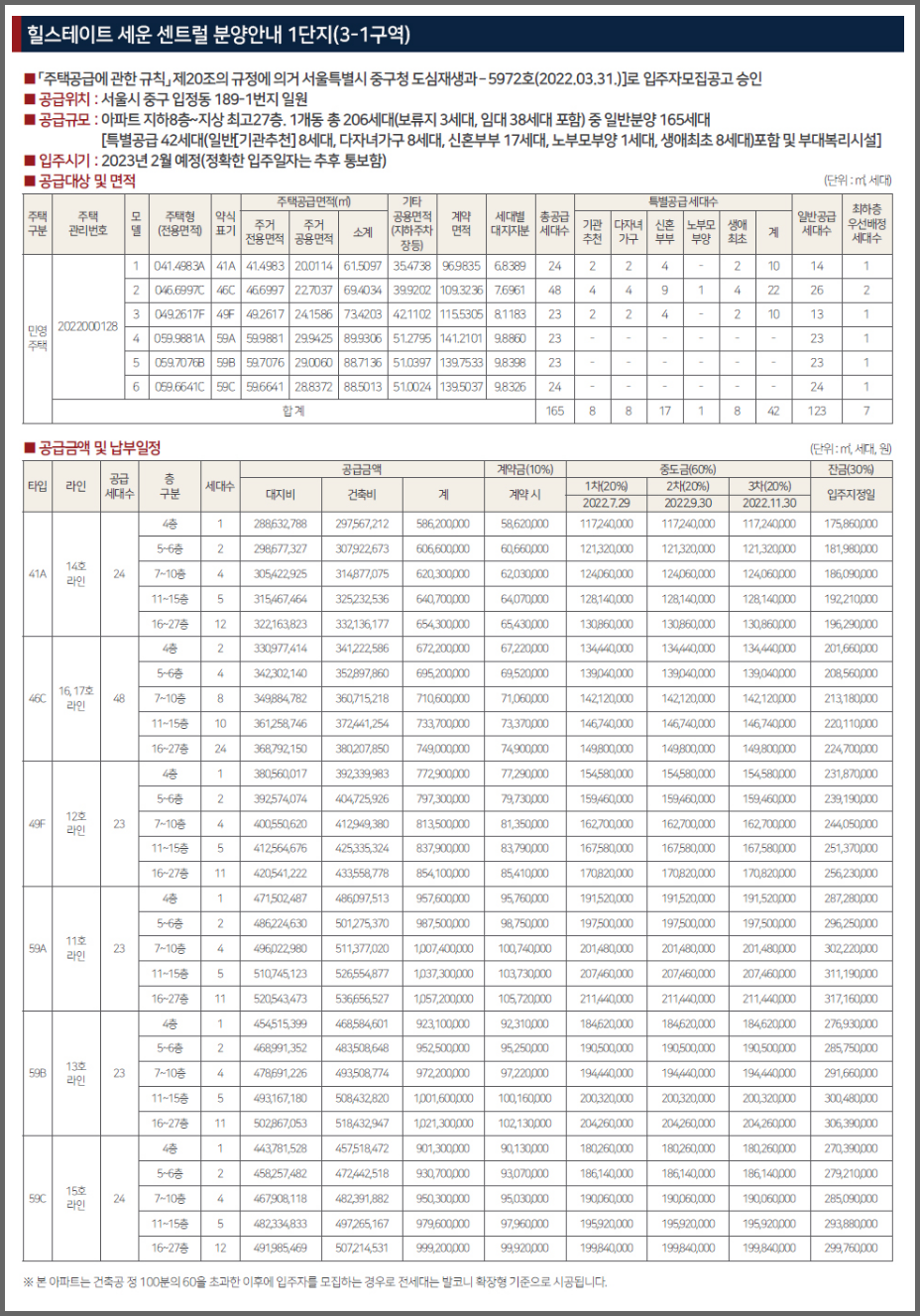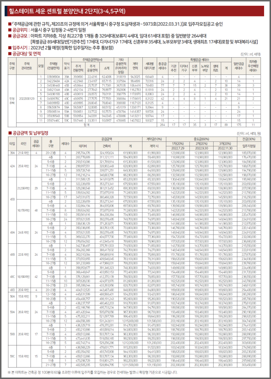 힐스테이트 세운 센트럴 아파트 청약 정보 입니다